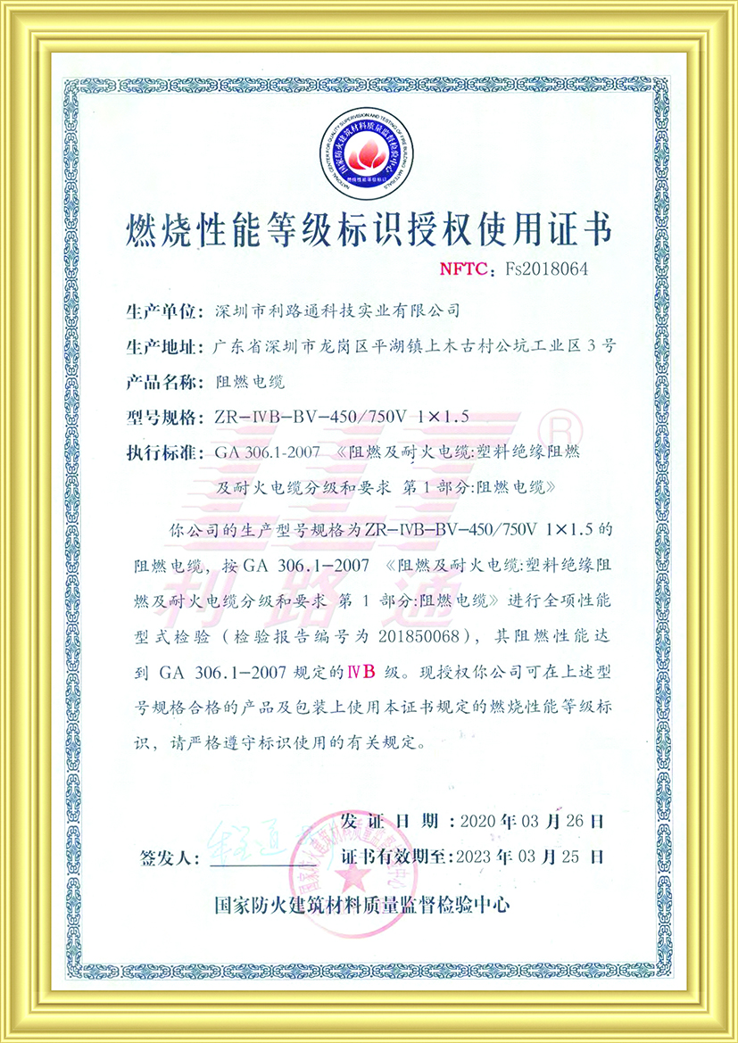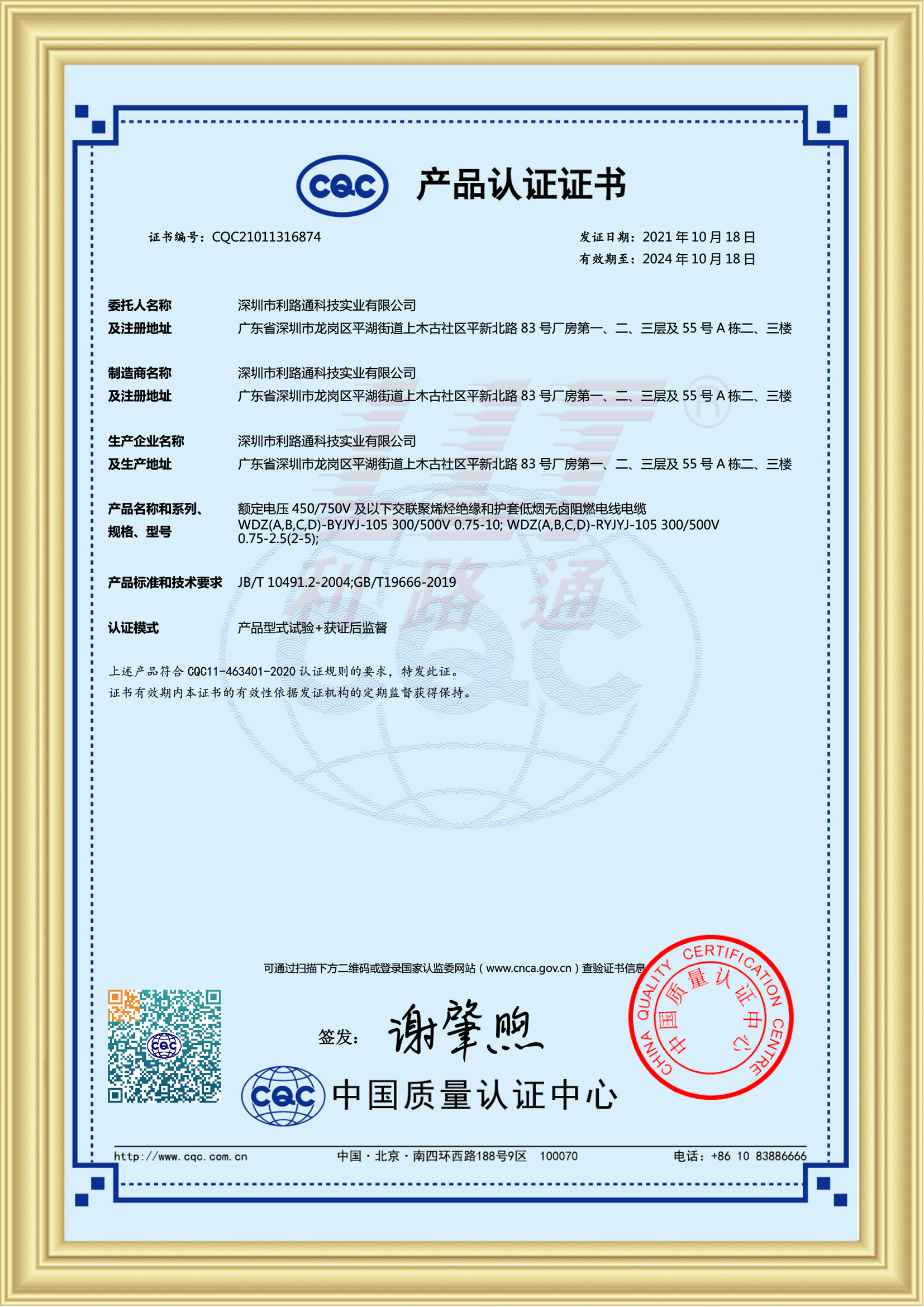 深圳市利路通科技實業有限公司成立于2001年,是一家主要從事防火線纜、硅膠線纜、橡膠線纜、低煙無鹵線纜、通訊線纜、漂浮線纜、耐寒線纜、控制線纜、柔性線纜、電梯線纜、機器人線纜、新能源專用線纜、光纖綜合線等全系列電線電纜的產品設計、研發、生產、銷售、工程方案銷售服務的綜合性企業,產品廣泛應用于消防與安防,通訊,新能源,太陽能,高層樓宇,軌道交通,橋梁,工業4.0設備,船舶,航空,軍工等領域并榮獲深圳高新技術企業、全國守合同重信用企業、深圳市愛心企業、深圳市消防安防百強企業、電線電纜協會理事會單位、國家一級計量體系合格企業、中國優秀民營科技企業。